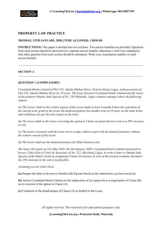 LearningTheLaw > Download Nigerian Law School Bar Finals 2020 Past Questions & Answers Bundle