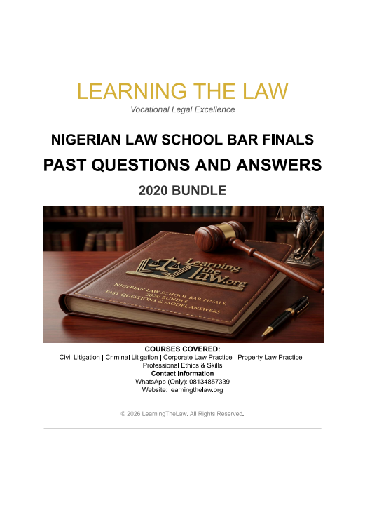 Preparing for the Nigerian Law School Bar Finals requires more than just reading the law—it requires understanding how the examiners expect you to apply it. The 2020 Past Questions and Answers Bundle by LearningTheLaw is a premium, meticulously structured study guide designed to give you a definitive edge in your Bar Part II examinations.